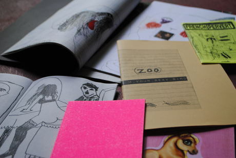 En 2011, Elodie Petit fonde les Éditions Douteuses: basée entre son lit une place et son imprimante de bureau, cette maison d’édition basse-définition a pour objectif de transformer le monde en quelque chose de puissant. Poétique et politique s’y enfoutrent mutuellement sur des imprimés rose-pute.